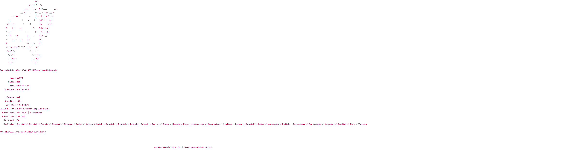 Voir le nfo de la release Space.Cadet.2024.1080p.WEB.H264-AccomplishedYak