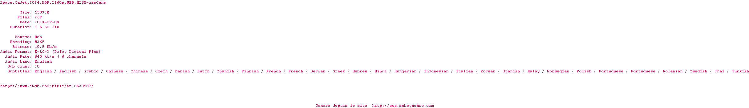 Voir le nfo de la release Space.Cadet.2024.HDR.2160p.WEB.H265-AssCans