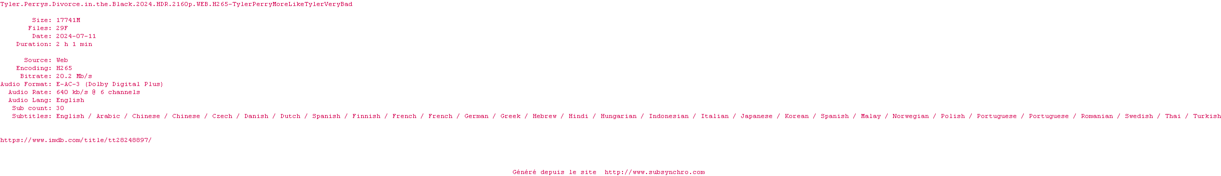 Voir le nfo de la release Tyler.Perrys.Divorce.In.The.Black.2024.HDR.2160p.WEB.H265-TylerPerryMoreLikeTylerVeryBad