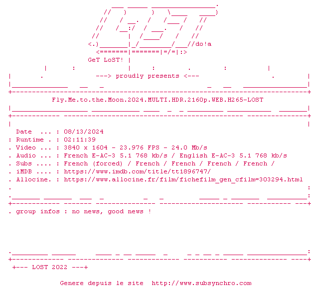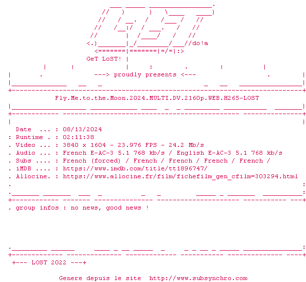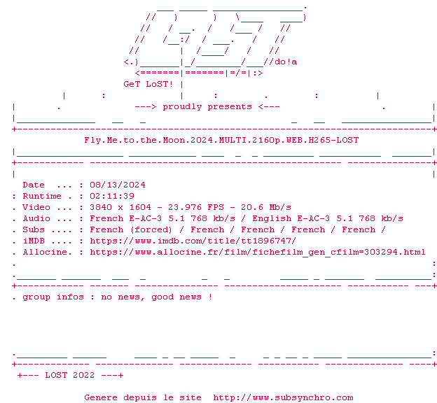 Voir le nfo de la release Fly.Me.To.The.Moon.2024.MULTI.2160p.WEB.H265-LOST