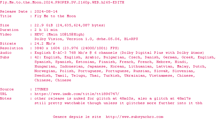 Voir le nfo de la release Fly.Me.To.The.Moon.2024.PROPER.DV.2160p.WEB.H265-EDITH