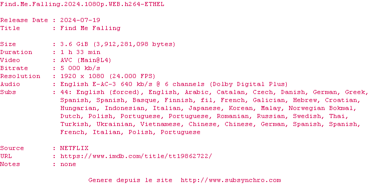 Voir le nfo de la release Find.Me.Falling.2024.1080p.WEB.H264-ETHEL