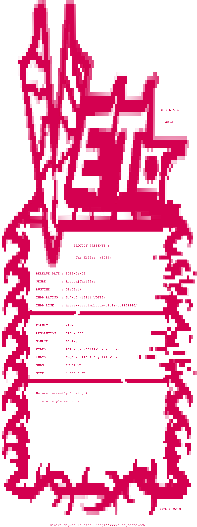 Voir le nfo de la release The.Killer.2024.720p.BluRay.x264-VETO