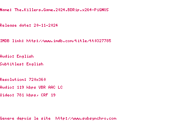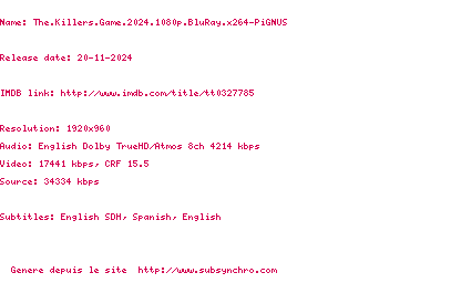 Voir le nfo de la release The.Killers.Game.2024.BDRip.x264-PiGNUS