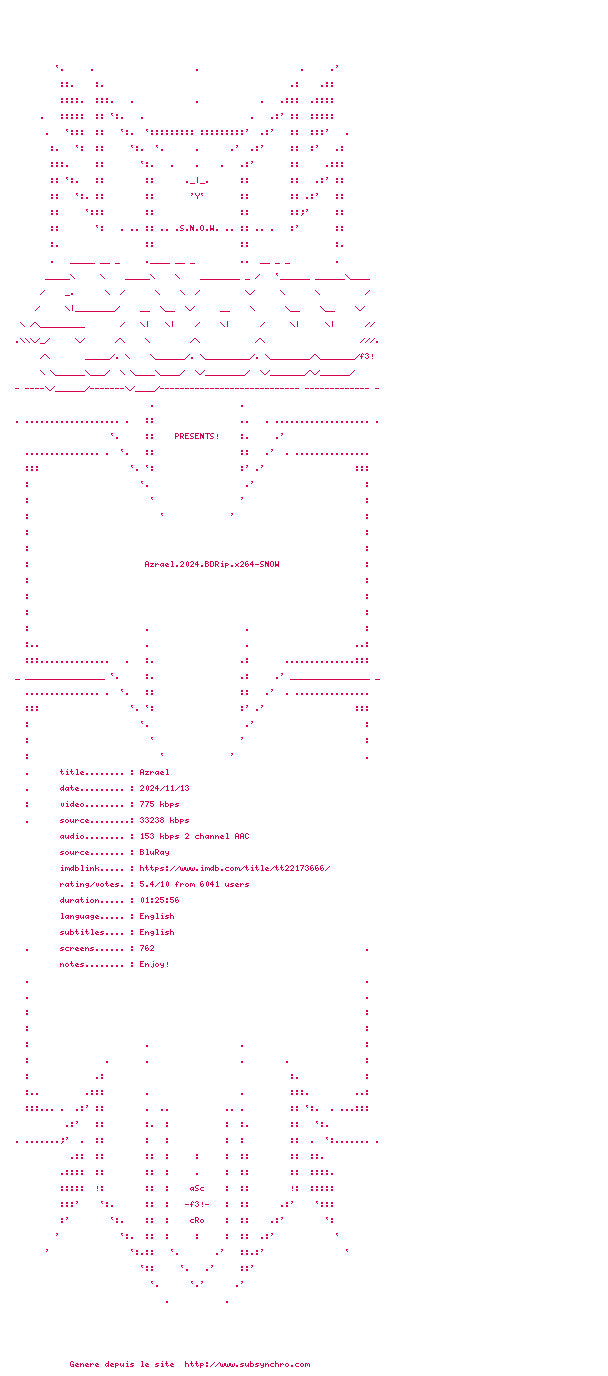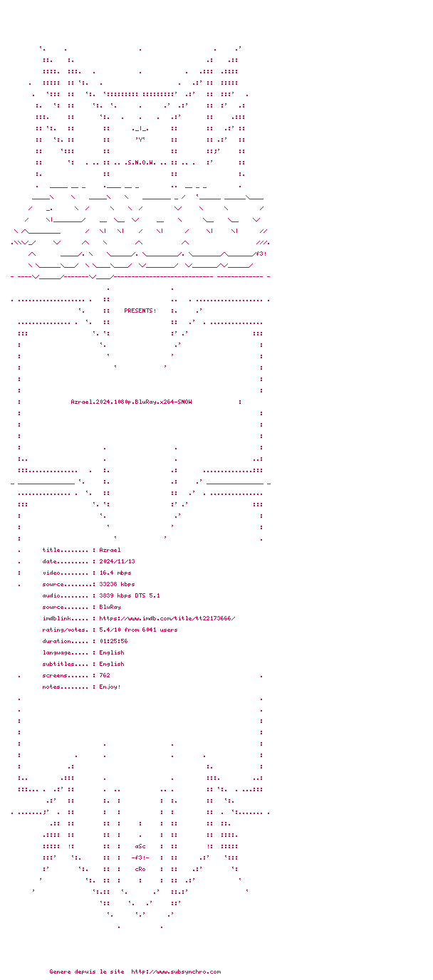 Voir le nfo de la release Azrael.2024.BDRip.x264-SNOW