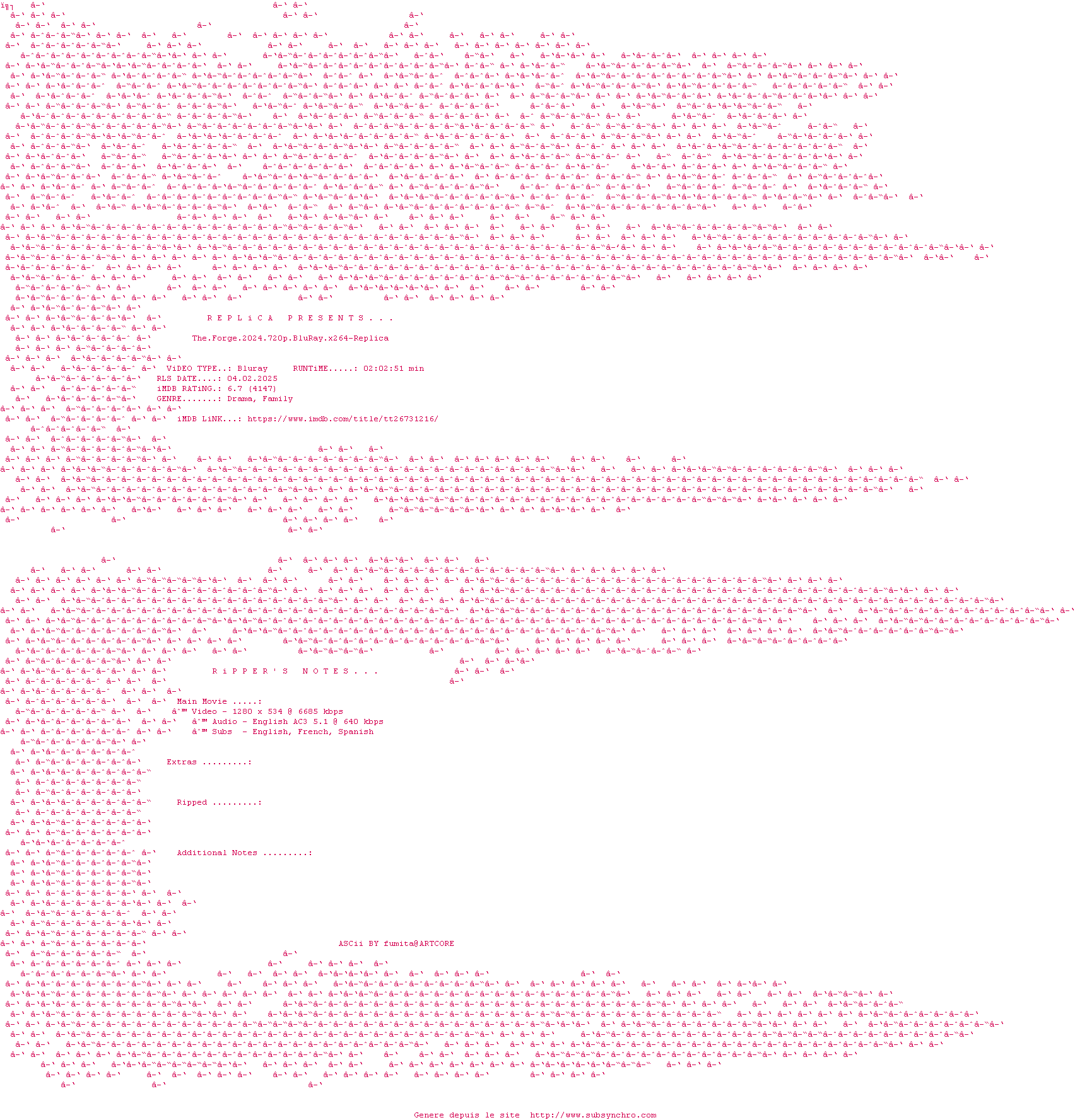 Voir le nfo de la release The.Forge.2024.BDRip.x264-Replica