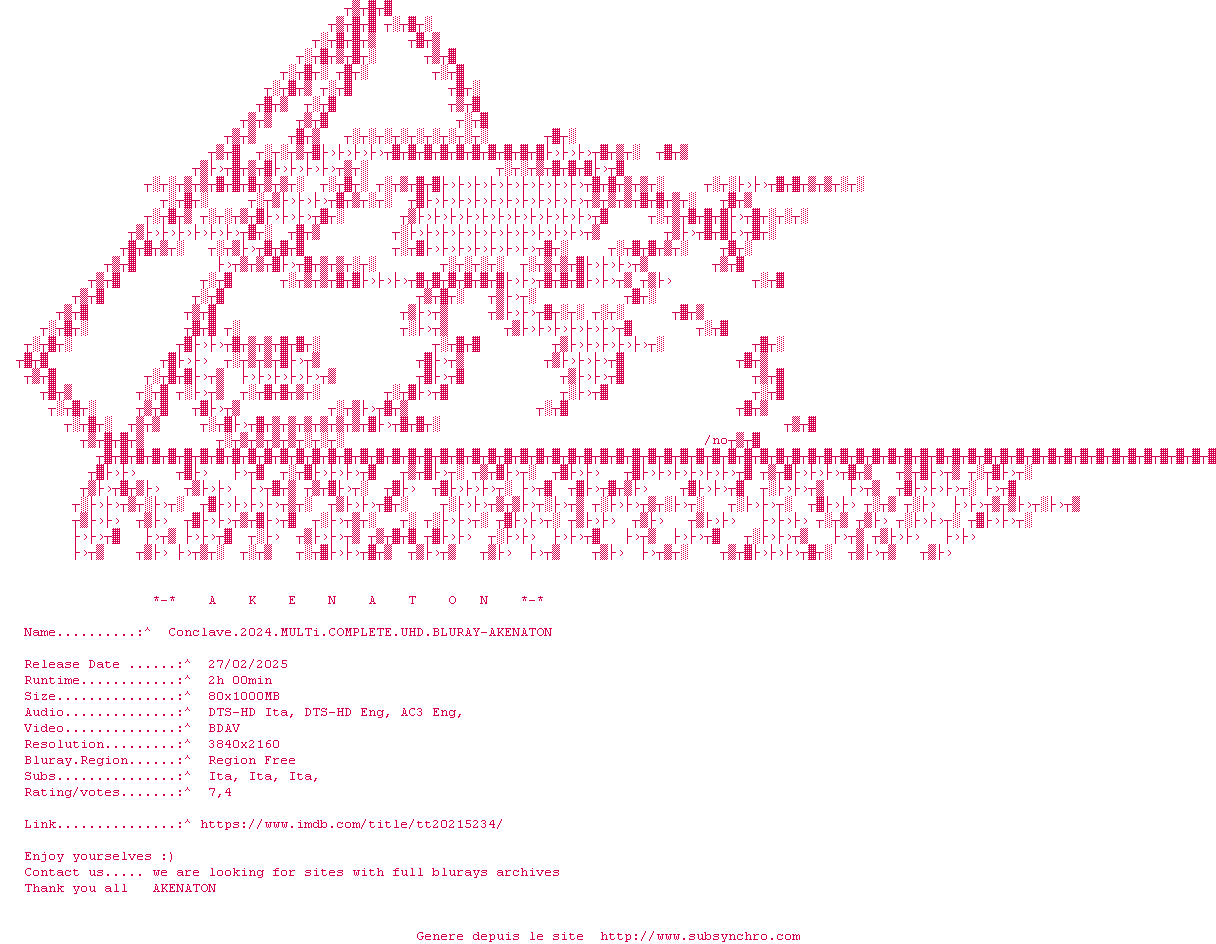 Voir le nfo de la release Conclave.2024.MULTi.COMPLETE.UHD.BLURAY-AKENATON