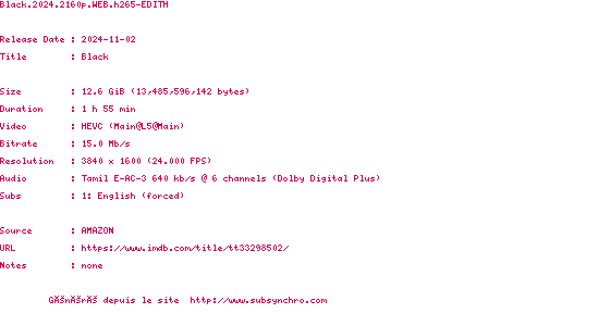Voir le nfo de la release Black.2024.2160p.WEB.H265-EDITH