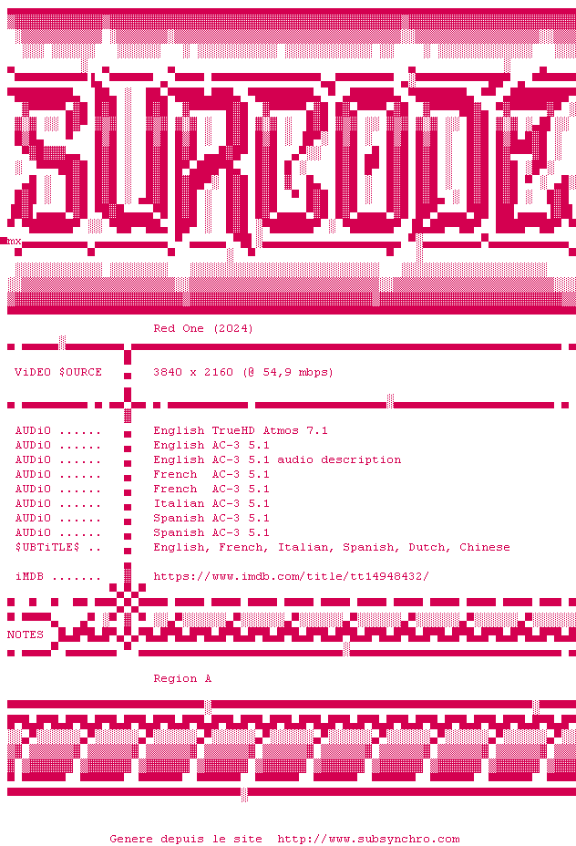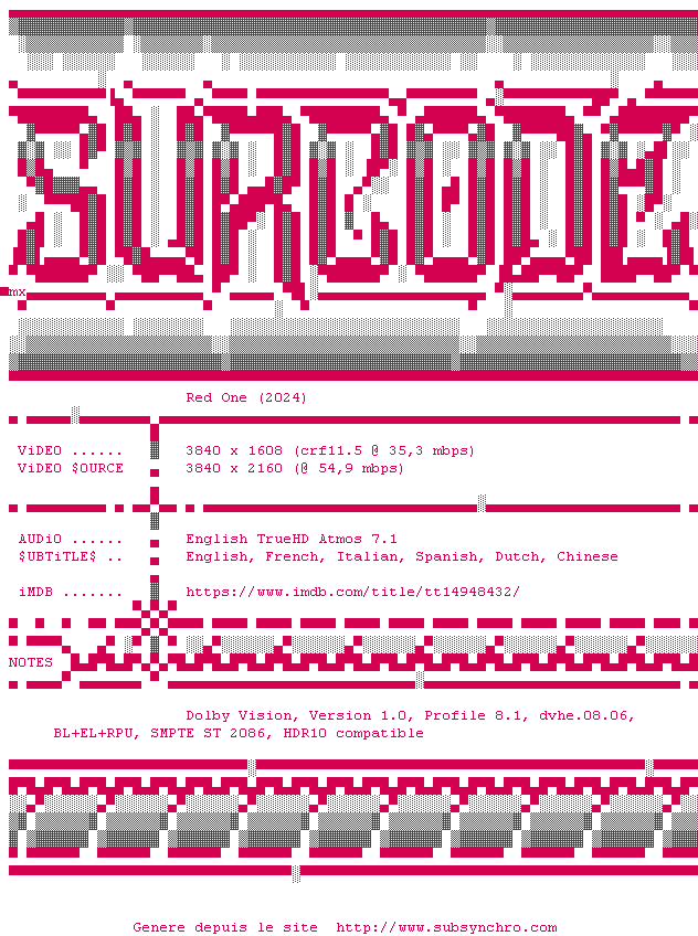 Voir le nfo de la release Red.One.2024.2160p.UHD.BluRay.x265-SURCODE
