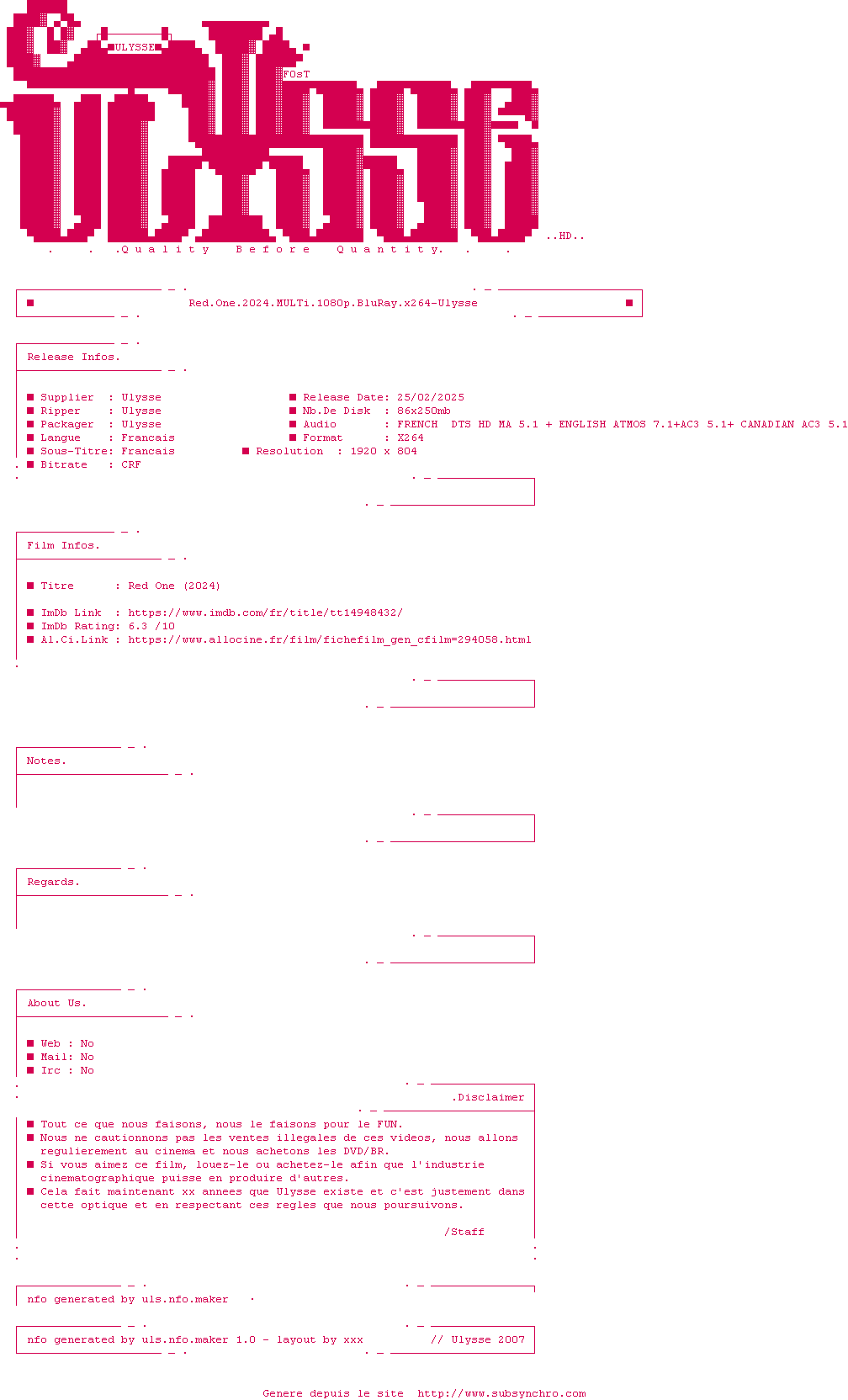 Voir le nfo de la release Red.One.2024.MULTi.1080p.BluRay.x264-Ulysse