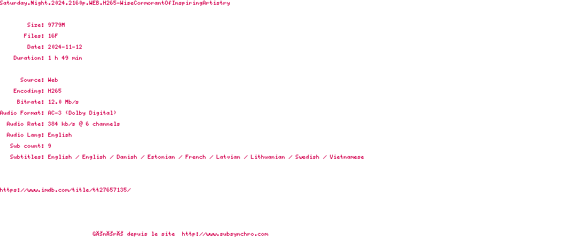 La release Saturday.Night.2024.HDR.2160p.WEB.H265-WiseCormorantOfInspiringArtistry est en 4K