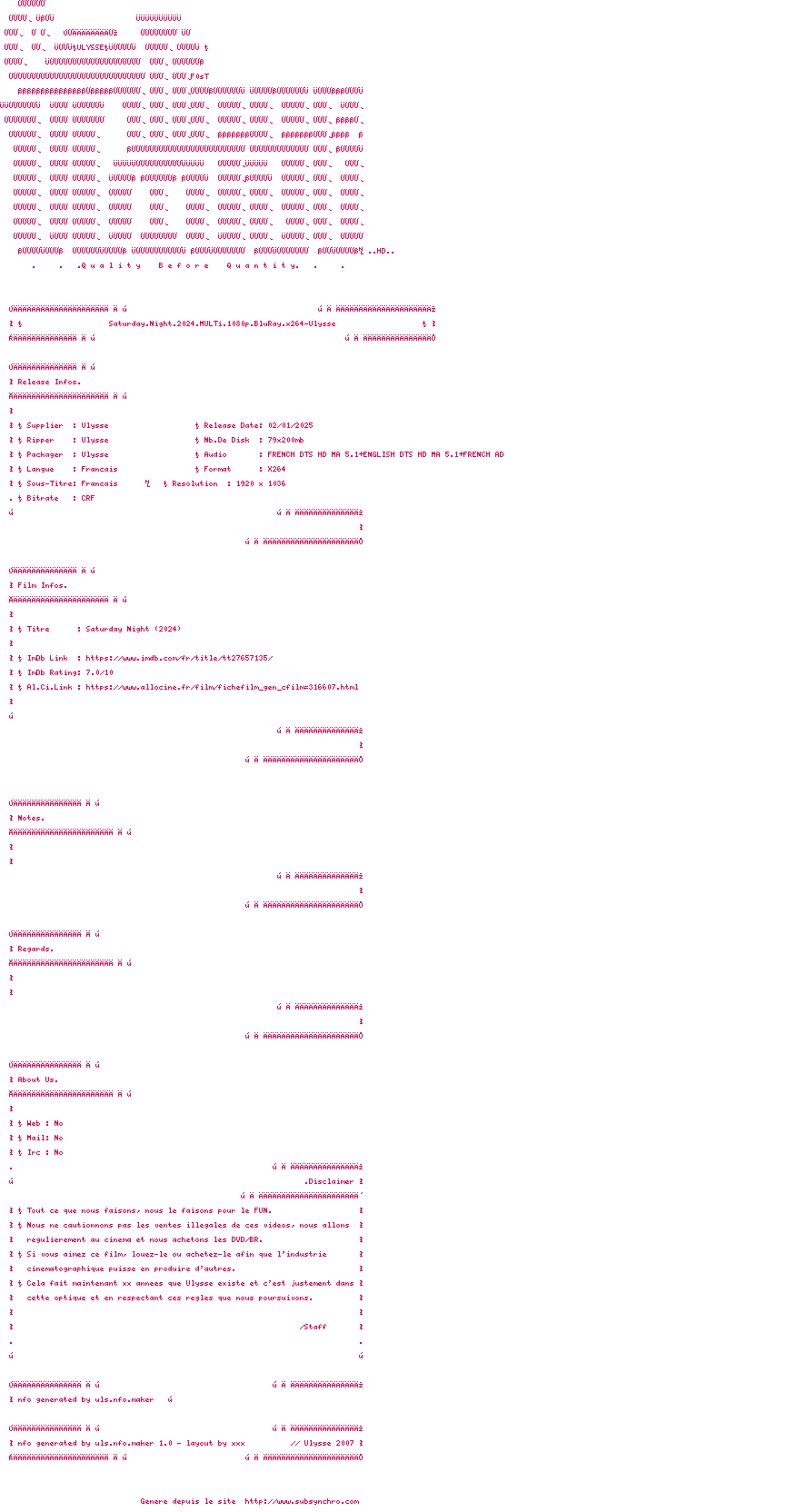 Voir le nfo de la release Saturday.Night.2024.MULTi.1080p.BluRay.x264-Ulysse