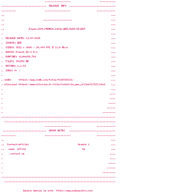 Voir le nfo de la release Elyas.2024.FRENCH.2160p.WEB.H265-SEiGHT