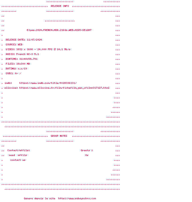 Voir le nfo de la release Elyas.2024.FRENCH.1080p.WEB.H264-SEiGHT