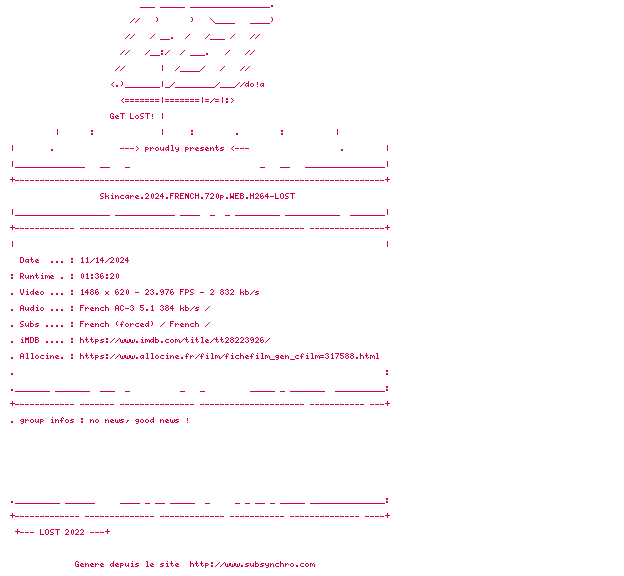 Voir le nfo de la release Skincare.2024.FRENCH.720p.WEB.H264-LOST