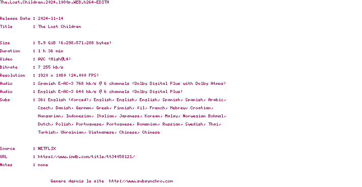 Voir le nfo de la release The.Lost.Children.2024.1080p.WEB.H264-EDITH