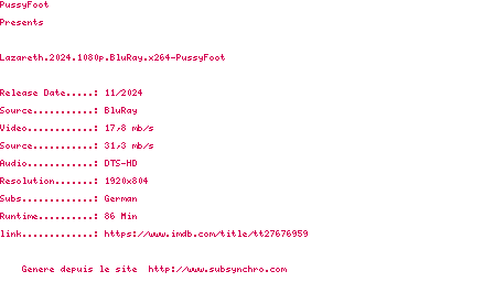Voir le nfo de la release Lazareth.2024.1080p.BluRay.x264-PussyFoot