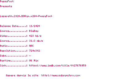 Voir le nfo de la release Lazareth.2024.BDRip.x264-PussyFoot