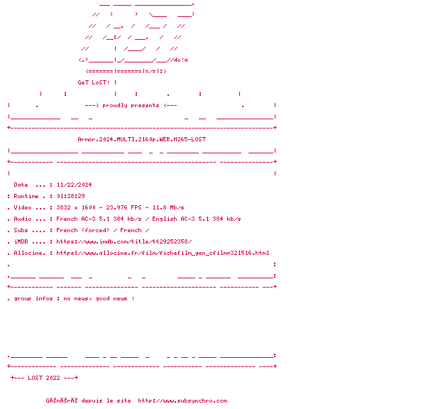 Voir le nfo de la release Armor.2024.MULTI.2160p.WEB.H265-LOST