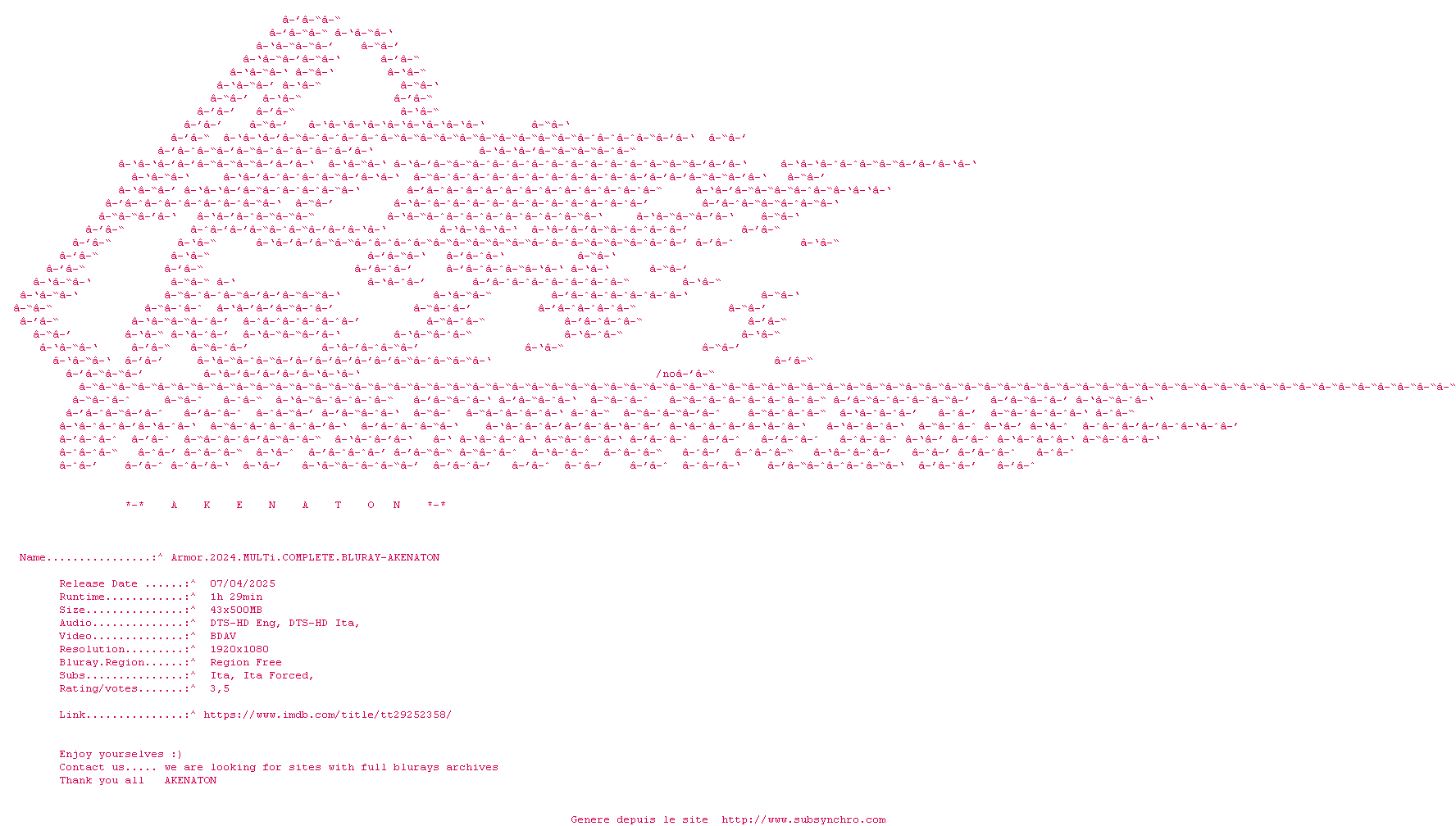 Voir le nfo de la release Armor.2024.MULTi.COMPLETE.BLURAY-AKENATON