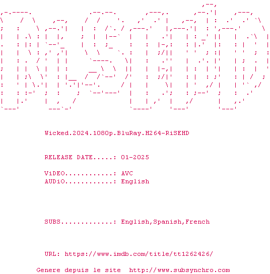 Voir le nfo de la release Wicked.2024.1080p.BluRay.H264-RiSEHD