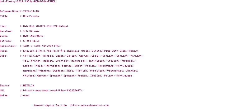 Voir le nfo de la release Hot.Frosty.2024.1080p.WEB.H264-ETHEL