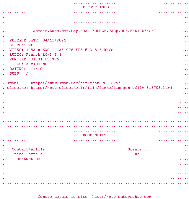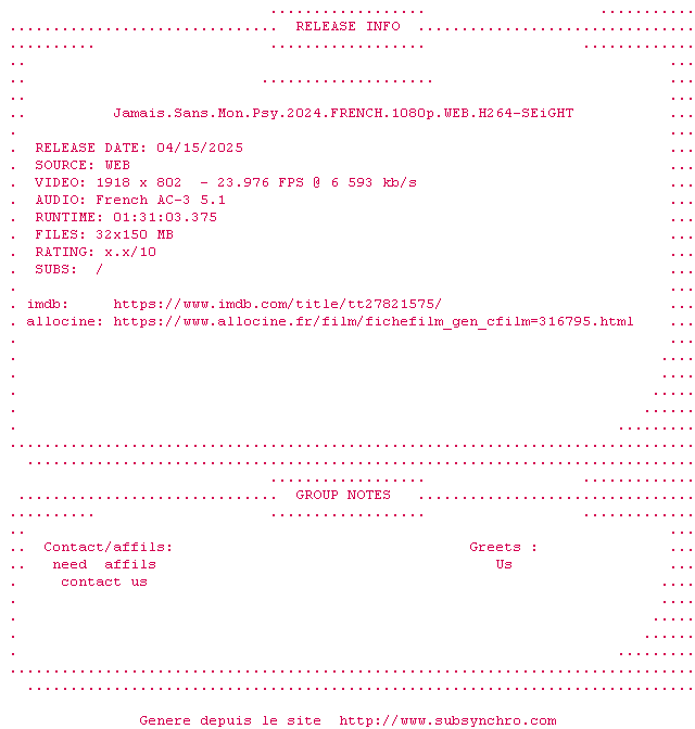 Il y a 1 commentaire pour le film #29408 !Le commentaire de SubSynchro