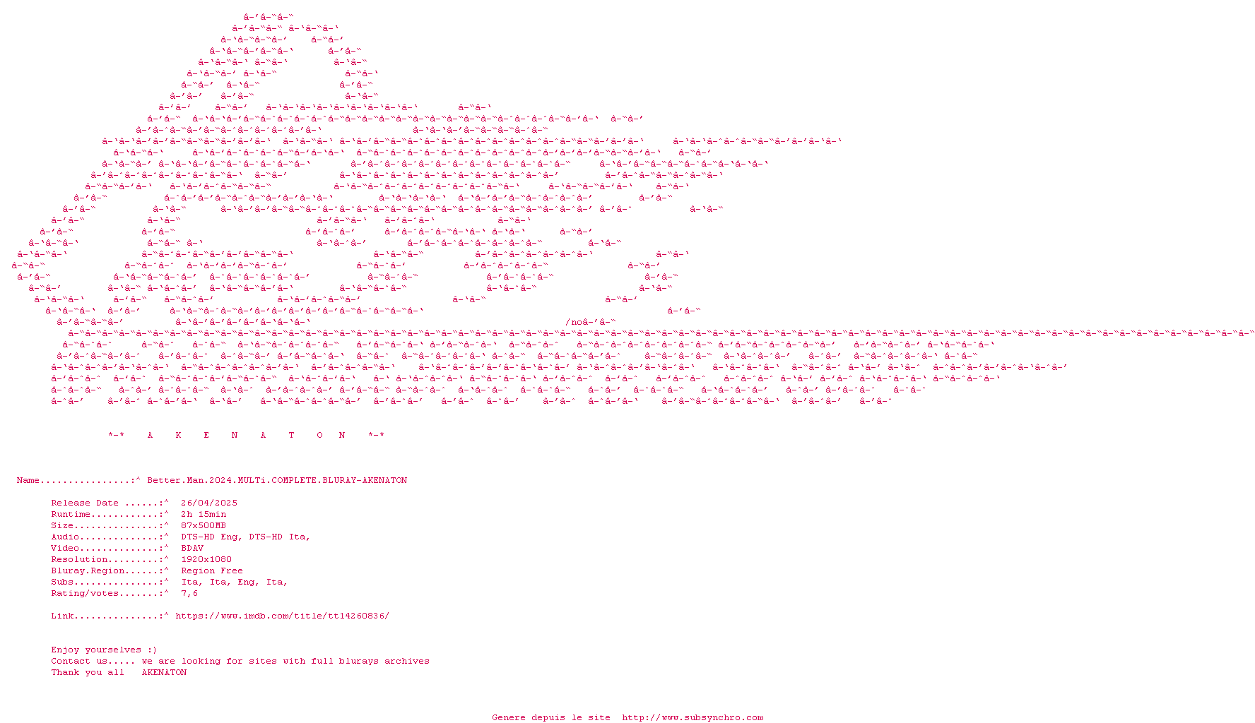 Voir le nfo de la release Better.Man.2024.MULTi.COMPLETE.BLURAY-AKENATON