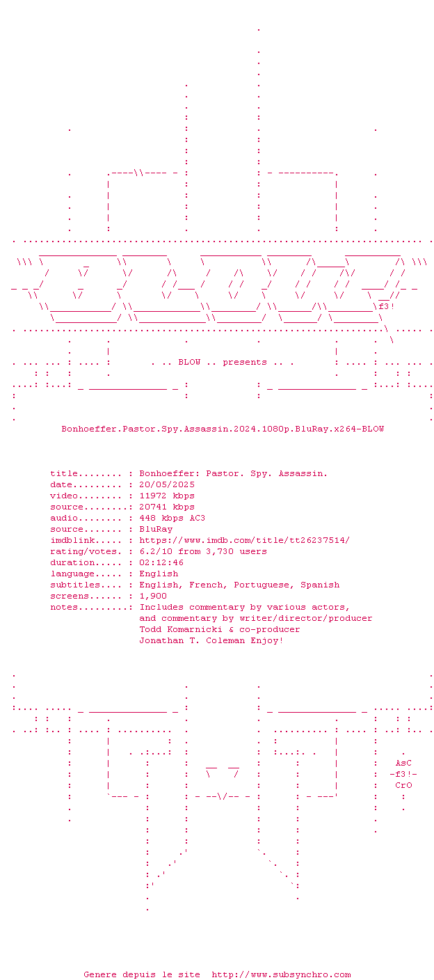 Voir le nfo de la release Bonhoeffer.Pastor.Spy.Assassin.2024.1080p.BluRay.x264-BLOW