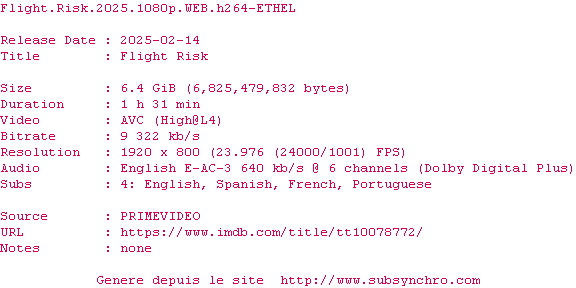 Voir le nfo de la release Flight.Risk.2025.1080p.WEB.H264-ETHEL