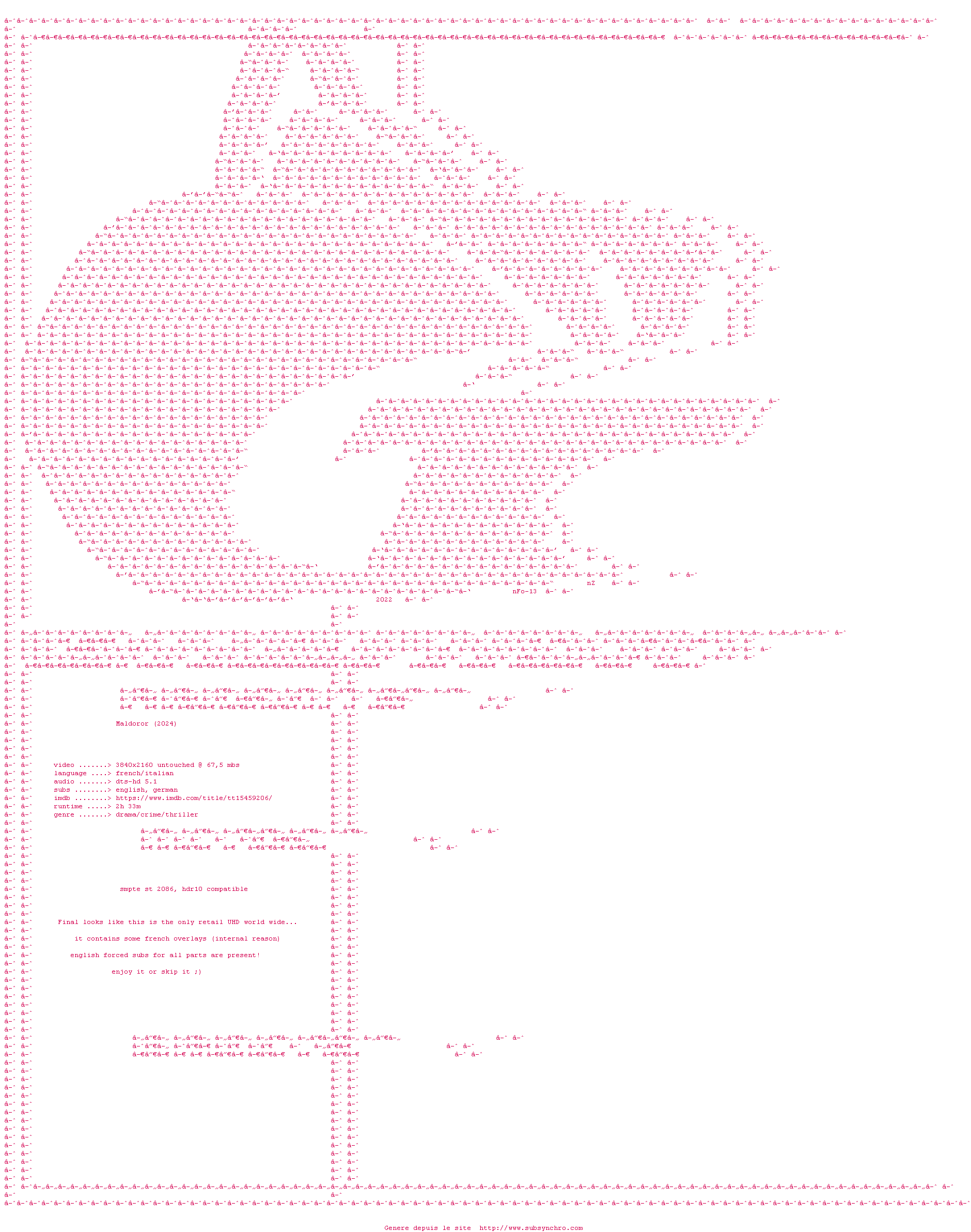 Le commentaire de SubSynchro Commente par SubSynchro (595), Le Mercredi 29 Janvier 2025 à 01h34 Ouais bon, pas de souvenir du film mais ça sous-entend que le film ne m'a pas plus des masses... Il est sur le site car il y aura surtout un petit fichier FL quand ça parle en italien quoi ! 0 0
