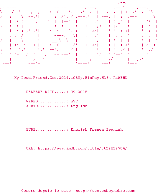 Voir le nfo de la release My.Dead.Friend.Zoe.2024.1080p.BluRay.H264-RiSEHD