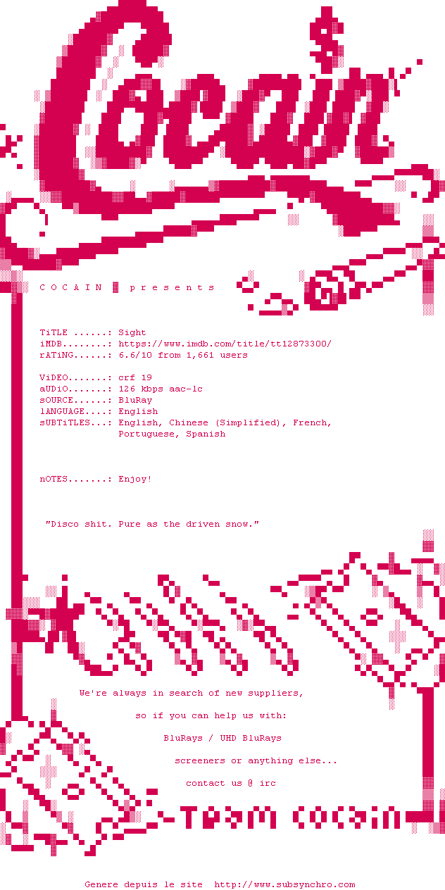 Voir le nfo de la release Sight.2023.1080p.BluRay.H264-COCAIN
