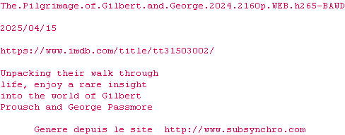 Voir le nfo de la release The.Pilgrimage.Of.Gilbert.And.George.2024.2160p.WEB.H265-BAWD