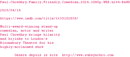 Voir le nfo de la release Paul.Chowdhry.Family.Friendly.Comedian.2024.1080p.WEB.H264-BAWD