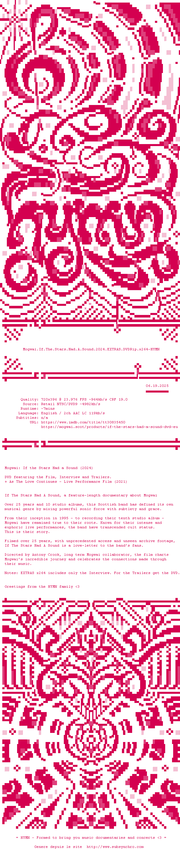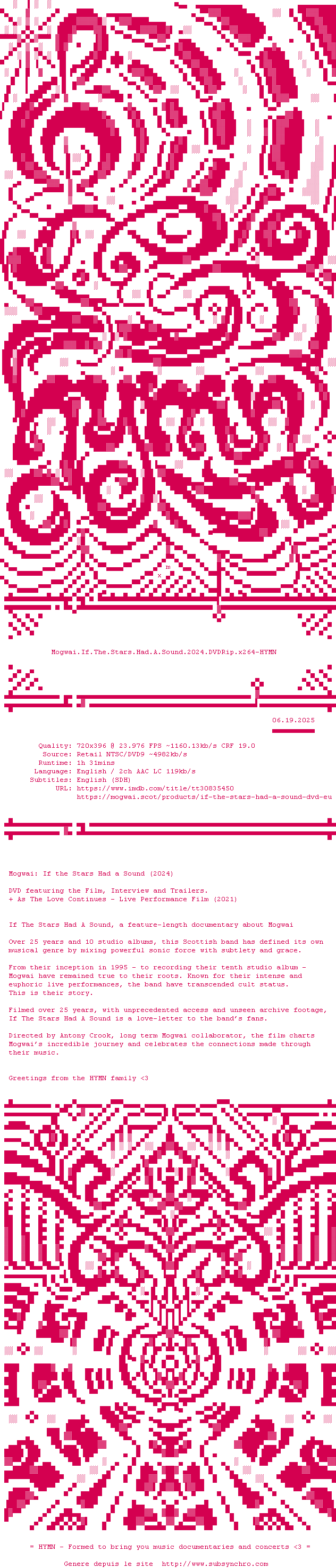 Voir le nfo de la release Mogwai.If.The.Stars.Had.A.Sound.2024.DVDRip.x264-HYMN