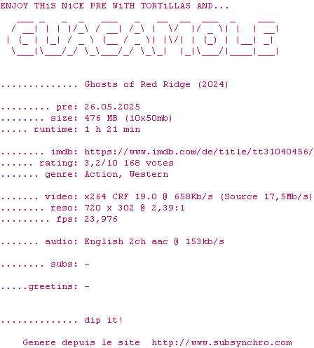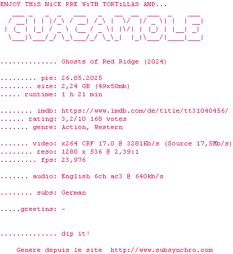 Voir le nfo de la release Ghosts.Of.Red.Ridge.2024.BDRiP.x264-GUACAMOLE