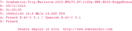Voir le nfo de la release Graduation.Trip.Mallorca.2025.MULTI.2160p.WEB.H265-HiggsBoson