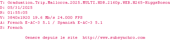 Voir le nfo de la release Graduation.Trip.Mallorca.2025.MULTI.HDR.2160p.WEB.H265-HiggsBoson