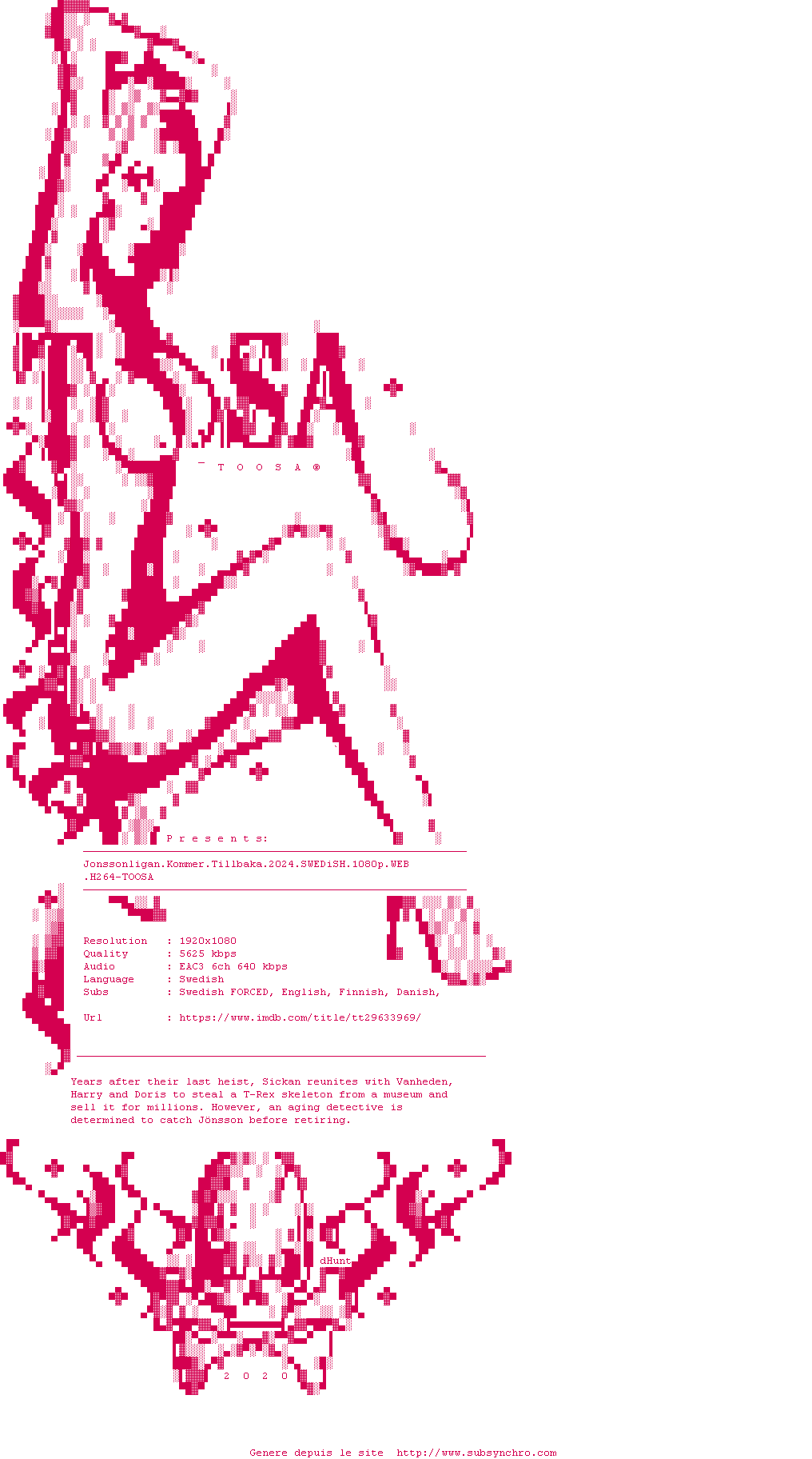 Voir le nfo de la release Jonssonligan.Kommer.Tillbaka.2024.SWEDiSH.1080p.WEB.H264-TOOSA