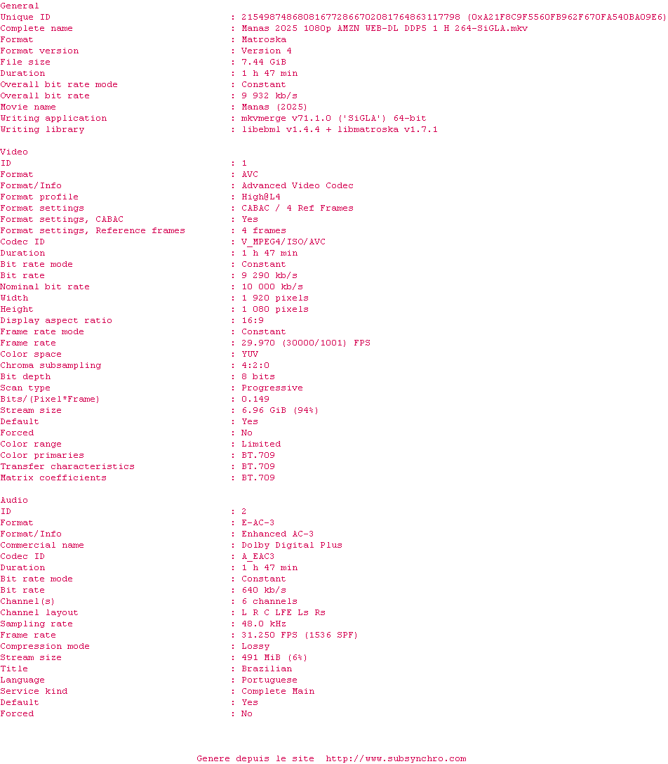 | C76 | Manas.2025.1080p.AMZN.WEB-DL.DDP5.1.H.264-C76 OpenSubtitles | 0 fichier | |||