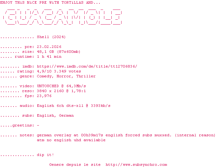 NFO de Shell.2024.iNTERNAL.2160p.UHD.BluRay.H265-GUACAMOLE