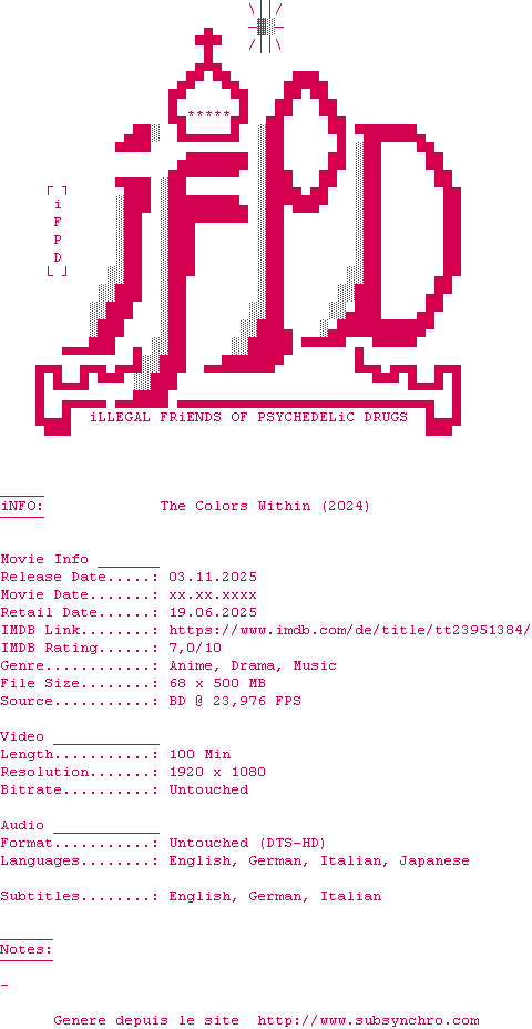 L'histoire tourne autour de trois personnages aux sensibilités atypiques qui se réunissent pour jouer de la musique. Parmi eux, Totsuko, une lycéenne qui possède la capacité de voir la "couleur" des émotions de ceux qui l'entourent.