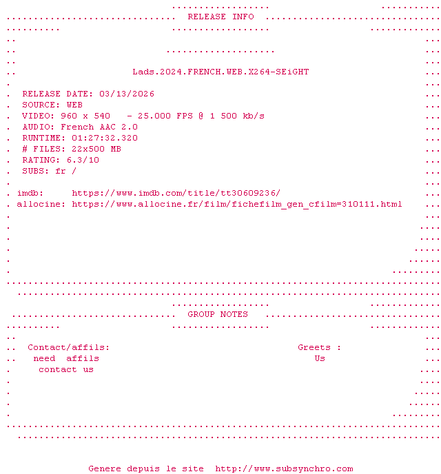 Telechargez le RSS « Fichier de la release Lads.2024.FRENCH.WEB.x264-SEiGHT »