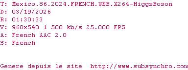 Telechargez le RSS « Fichier de la release Mexico.86.2024.FRENCH.WEB.x264-HiggsBoson »