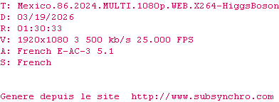 Telechargez le RSS « Fichier de la release Mexico.86.2024.MULTI.1080p.WEB.x264-HiggsBoson »
