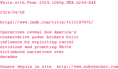Y avez-vous pense ? Nous proposons déjà 1608 sous-titres pour le film White with Fear. Avez-vous essaye de voir si ces sous-titres etaient compatibles avec cette release ? On vous laisse le soin de tester cela pour nous et de contribuer au site en postant le sous-titre en cas de compatiblite constatee !