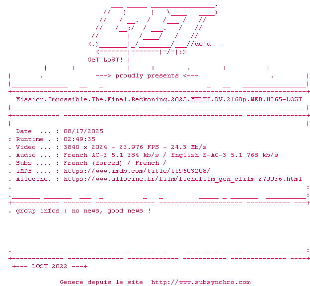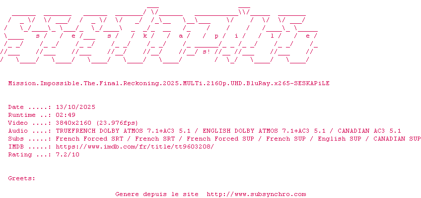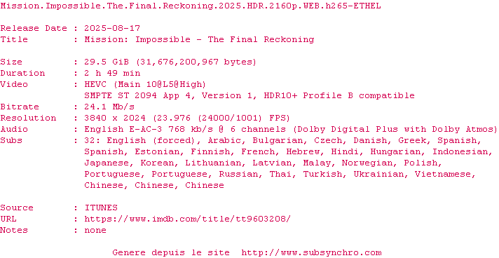 Est-ce moi qui ai vieilli ou les scénaristes qui ont mal évolué mais ce soir, j'ai été voir le dernier « Mission Impossible » et je n'ai pas spécialement accroché à l'histoire du film car il fallait pas mal réfléchir et ce n'était pas juste un film d'action de contemplation...