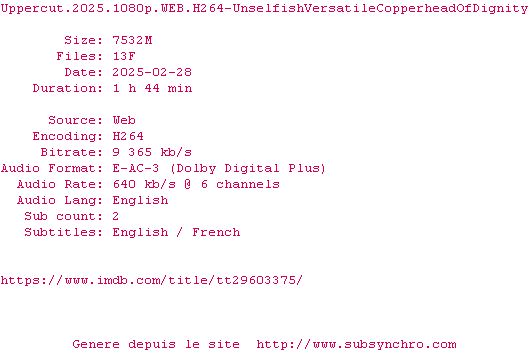 Voir le nfo de la release Uppercut.2025.1080p.WEB.H264-UnselfishVersatileCopperheadOfDignity