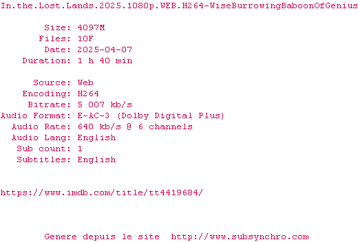 Voir le nfo de la release In.The.Lost.Lands.2025.1080p.WEB.H264-WiseBurrowingBaboonOfGenius